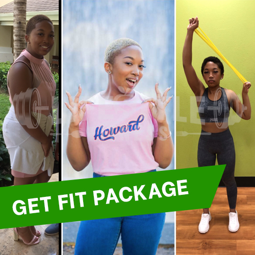 This package includes 30 days of customized Get Fit online training, nutritional guidance, all the fitness equipment needed for your workouts, (1 set of 11 pieces resistance bands, 1 stability ball, 1 jump rope, 1 set of 5 pieces loop resistance bands) and the professional guidance needed to achieve your fitness goals.